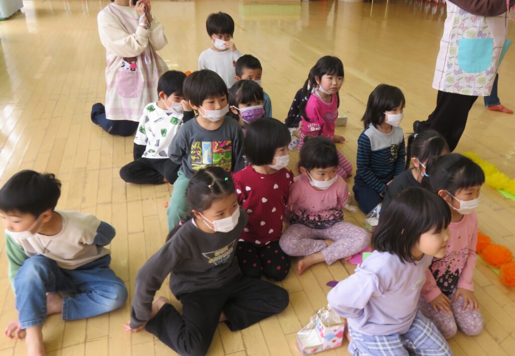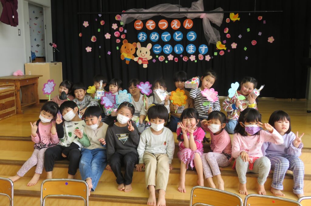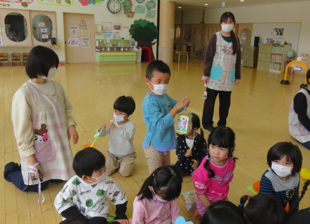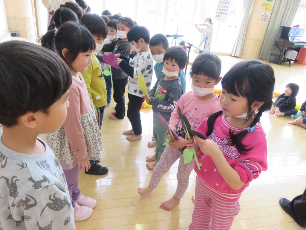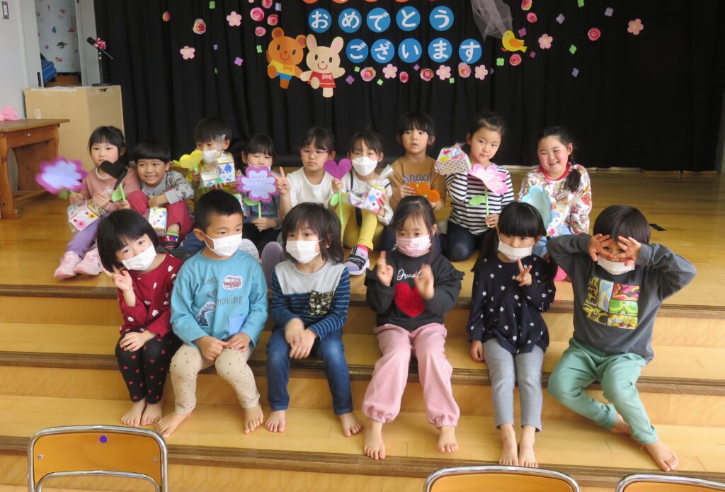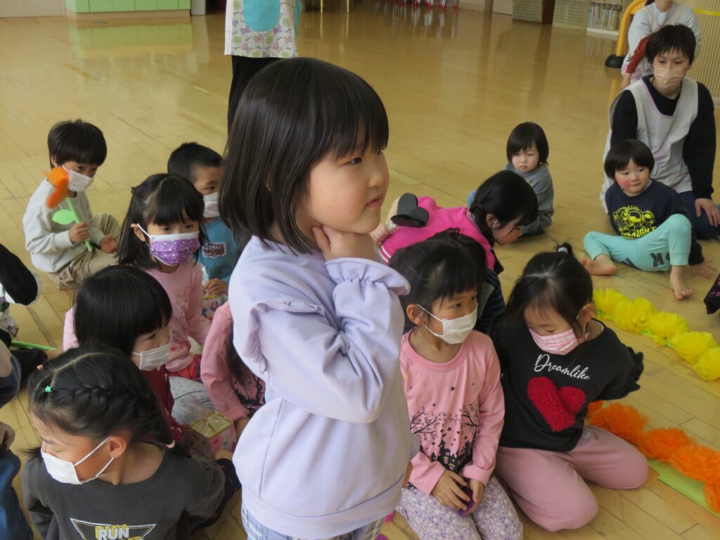 ひまわり組さん、今までありがとう! 2026.03.27 今まで一緒に遊んでくれた年長さんとお別れ会をしました。いままで一緒に遊んでくれたお礼に、3・4歳児から手作りのペン立てとメッセージカードがプレゼントされました。その他にも、得意技を披露したり、質問コーナーを楽しんだり、時間の許す限り交流を楽しみました。 お別れするのが悲しくて、涙する子もおりました。