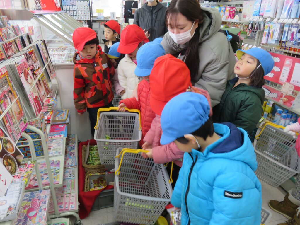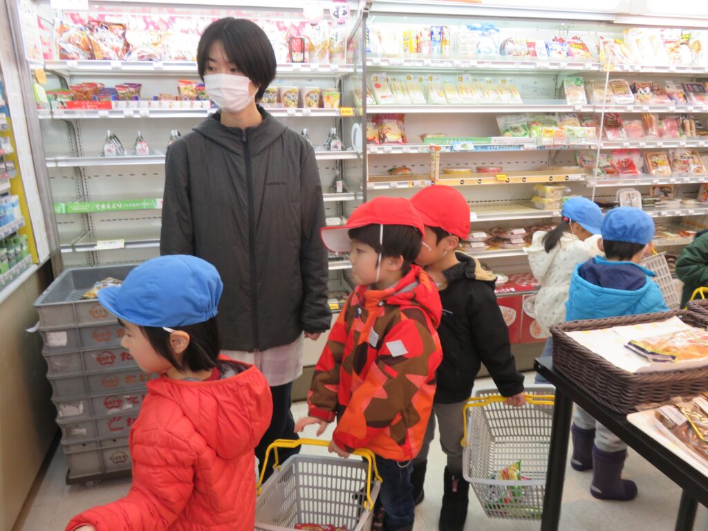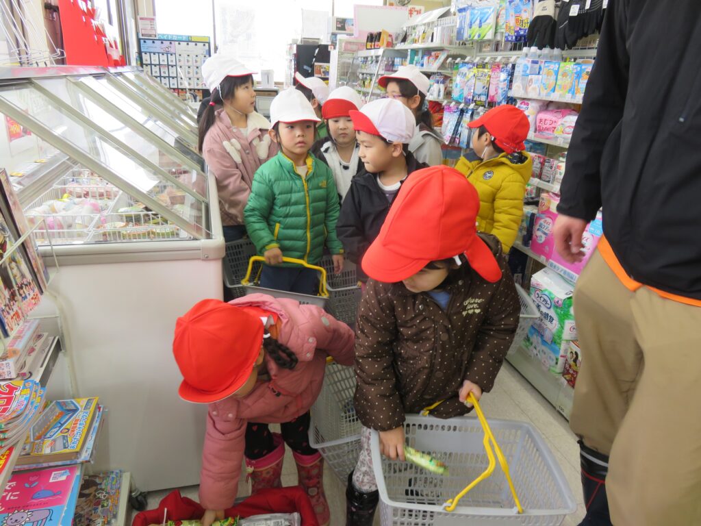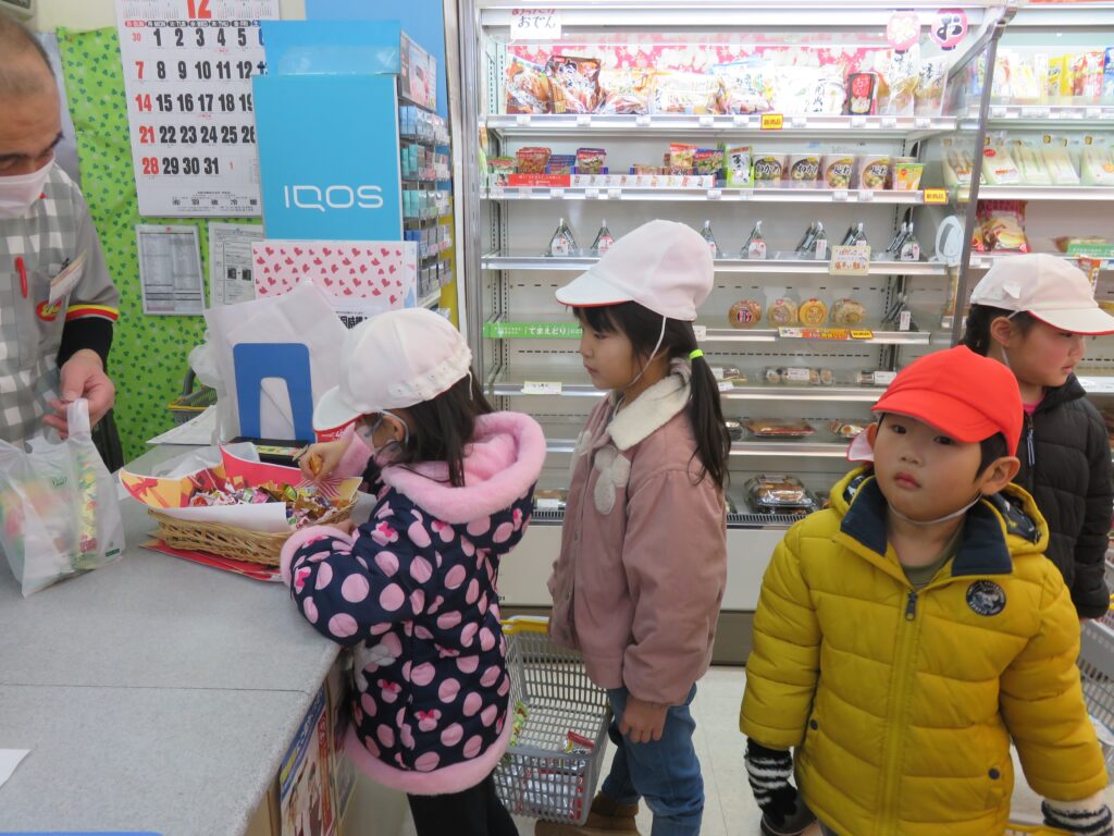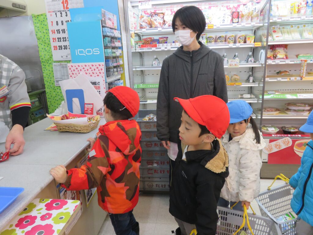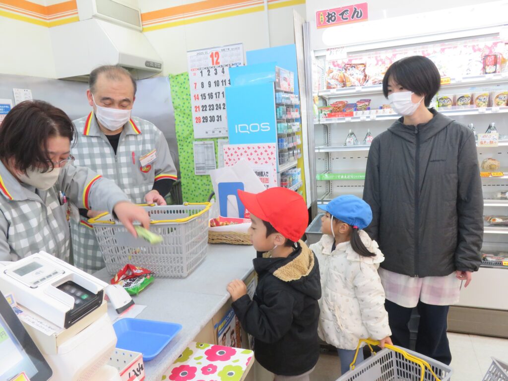 デイリーでお買い物体験 2025.12.26 3~5歳児がデイリーヤマザキ東成瀬店で、お買い物体験をしました。公共のルールを守りながら、レジに並んであいさつをして店員さんと言葉のやり取りを楽しむ子どもたちの姿がみられました。お買い物体験の中で社会性を育むことをねらいとして実施しました。今回もデイリーヤマザキ東成瀬店、真心情熱価格にてご提供いただきました。子どもたちを想う温かいお心遣いに感謝します。