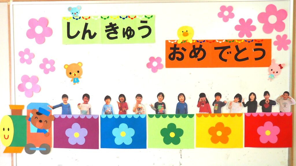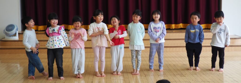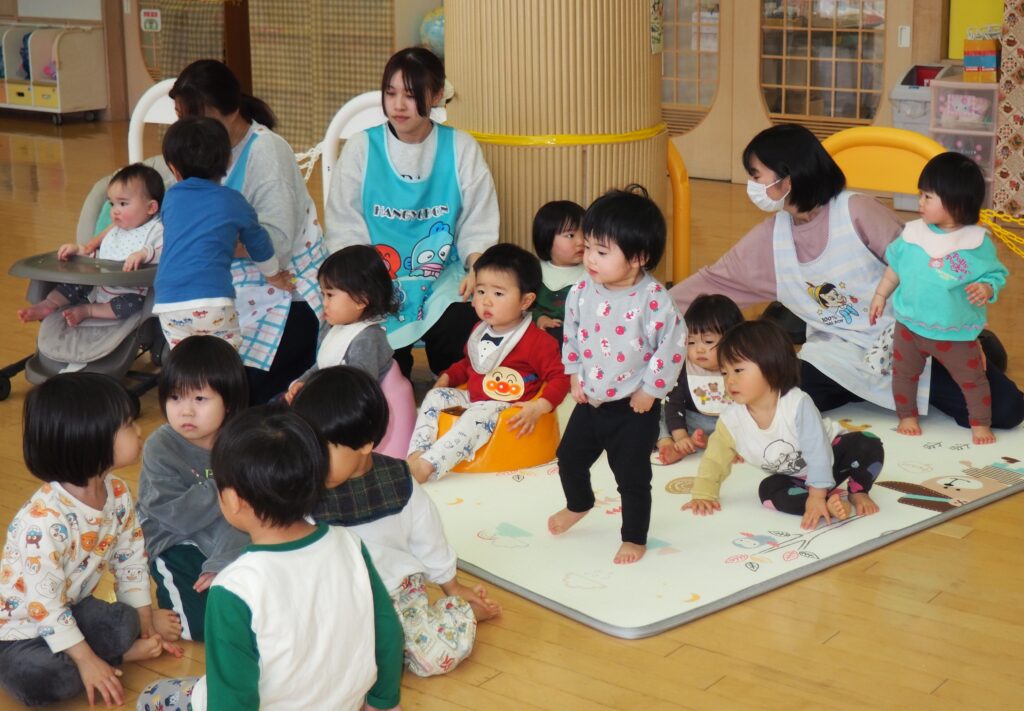 令和8年度スタート!進級を祝う会 2026.04.01 令和8年度がスタートし、ホールで進級を祝う会をしました。進級したことの喜びを感じたり、保育園での新しいスタートへの期待を高めることをねらいとし、新しい担任との親睦を深め、これからの1年が楽しみになるような会となるよう実施しました。今年度も安全安心で「わくわくした保育」を提供していきたいと思っています。今年度も保護者や地域の皆様のご理解とご協力をよろしくお願いいたします。