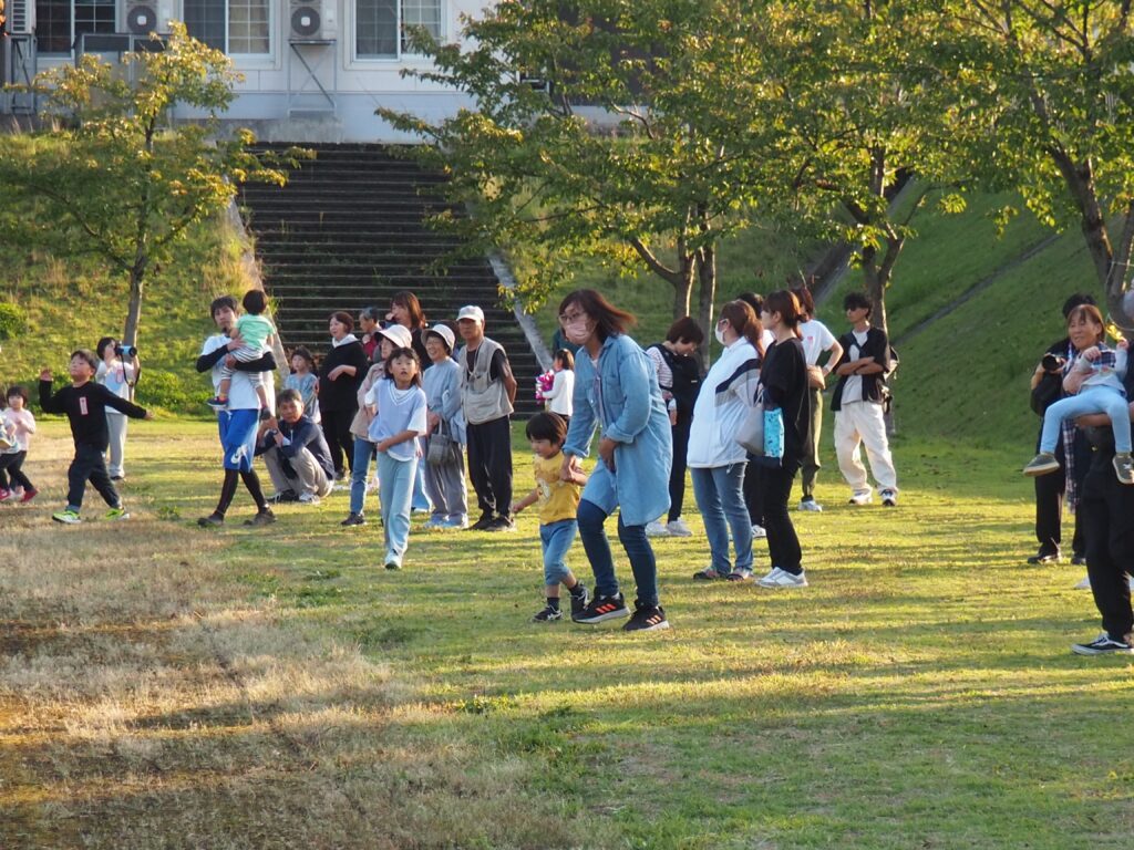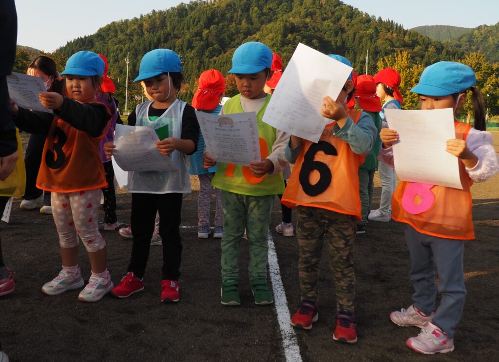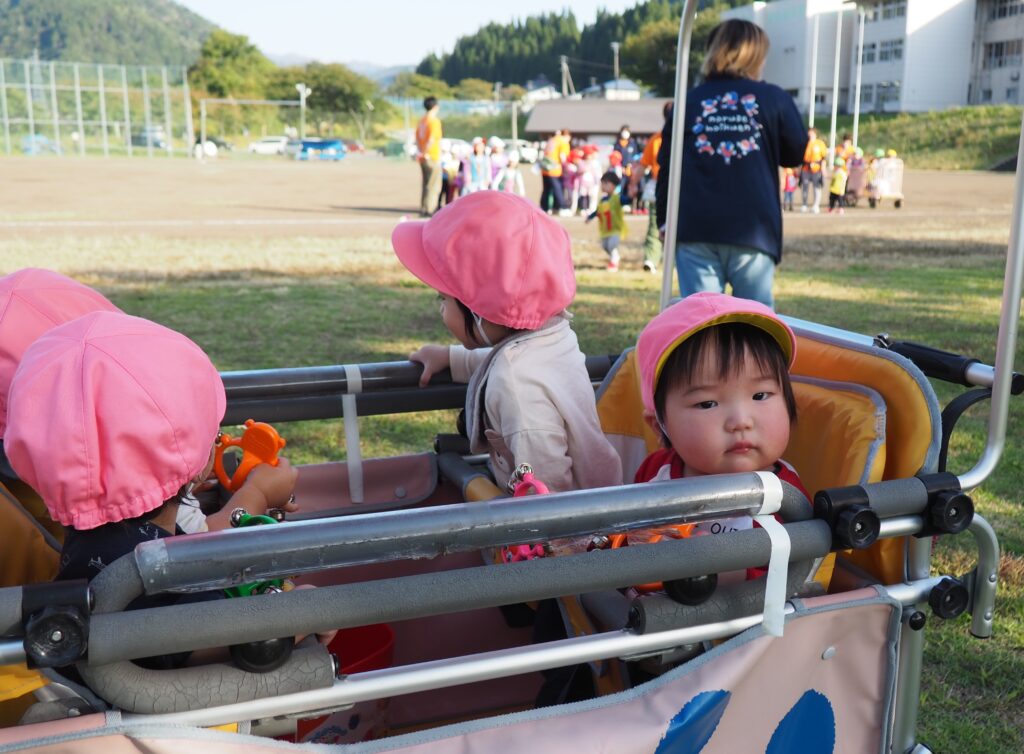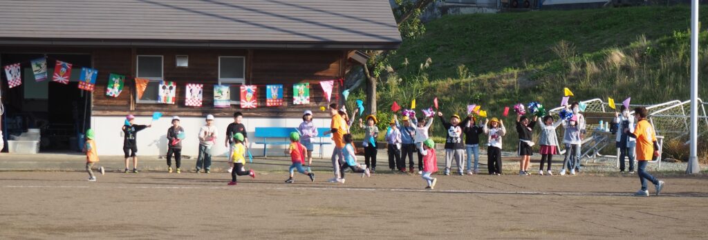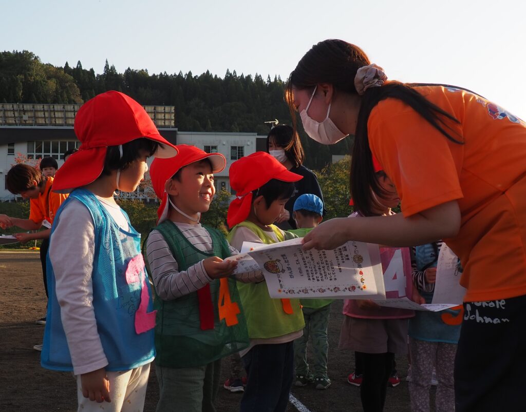 駐在さんが熊被害対策のためにパトカーを走らせながら見守ってくださいました。グラウンド周辺を何周もパトロールしながら子どもたちの安全を支えてくださったことに心より感謝いたします。また、役場からは音の鳴るものとして大太鼓とサイレン付き拡声器を貸していただいたことで、改めて地域に守られていることを実感する機会となりました。