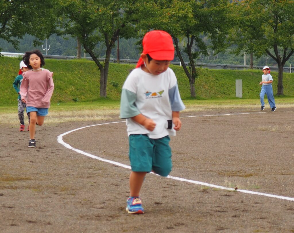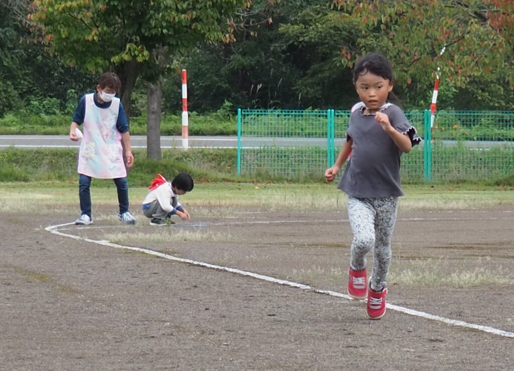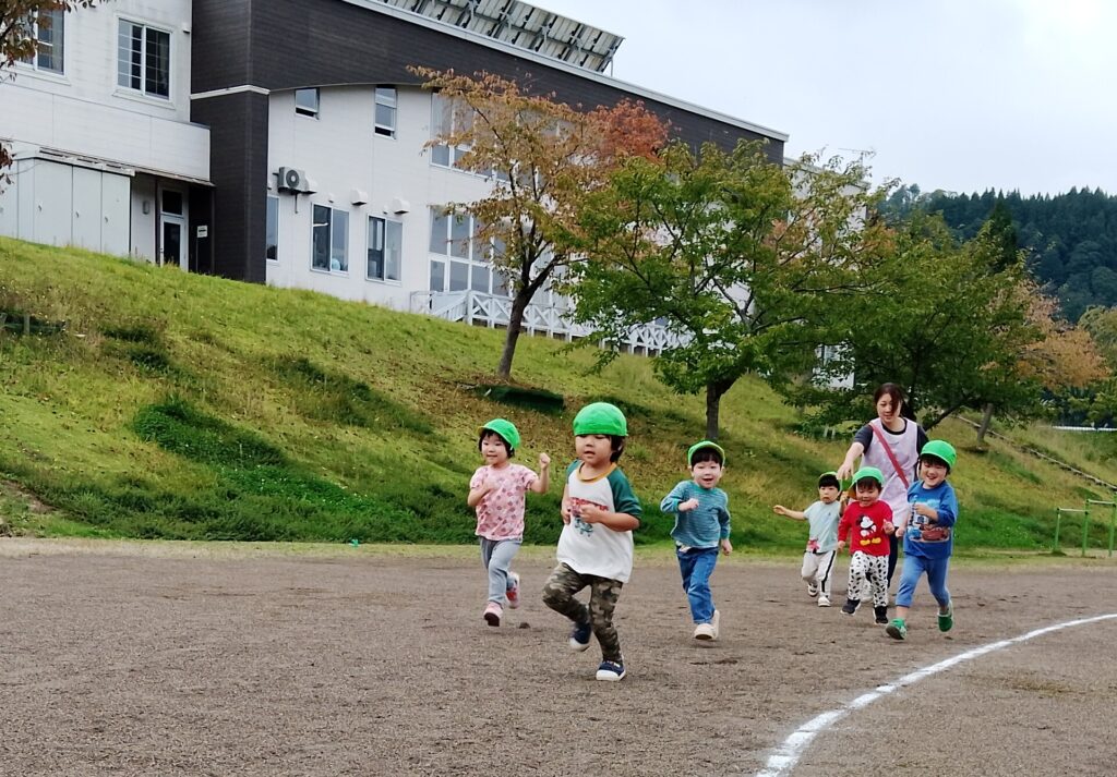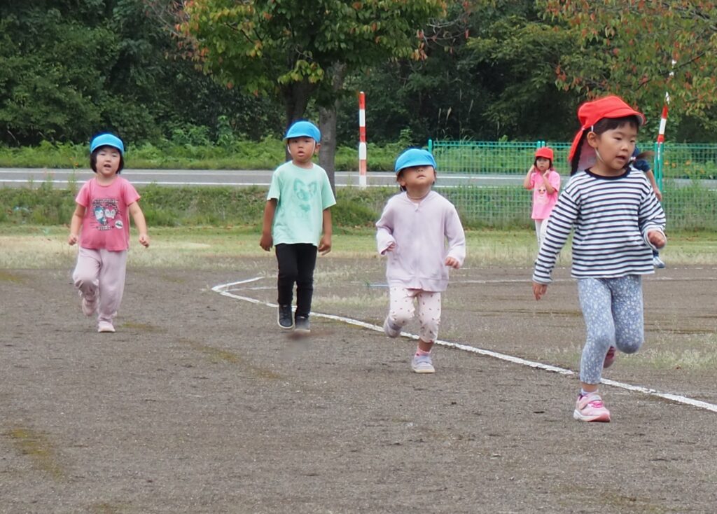 体力アップ!マラソンごっこ 2025.10.08 15日の公開マラソンごっこに向けて、2歳児以上の子どもたちが元気にグラウンドを駆け回っています。体力作りの一環で、自分のペースでゴールまで走りきるという強い気持ちを養っていきたいと思っています。