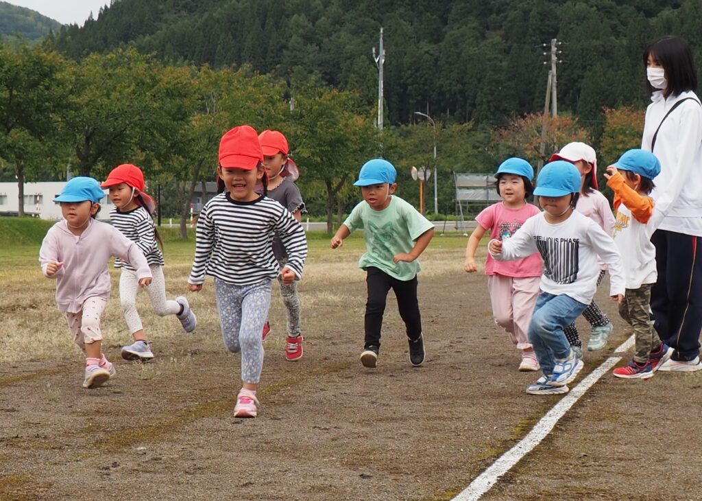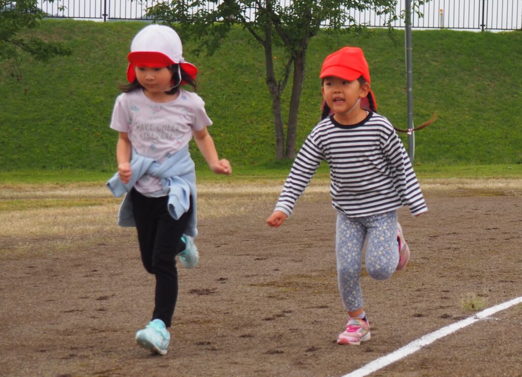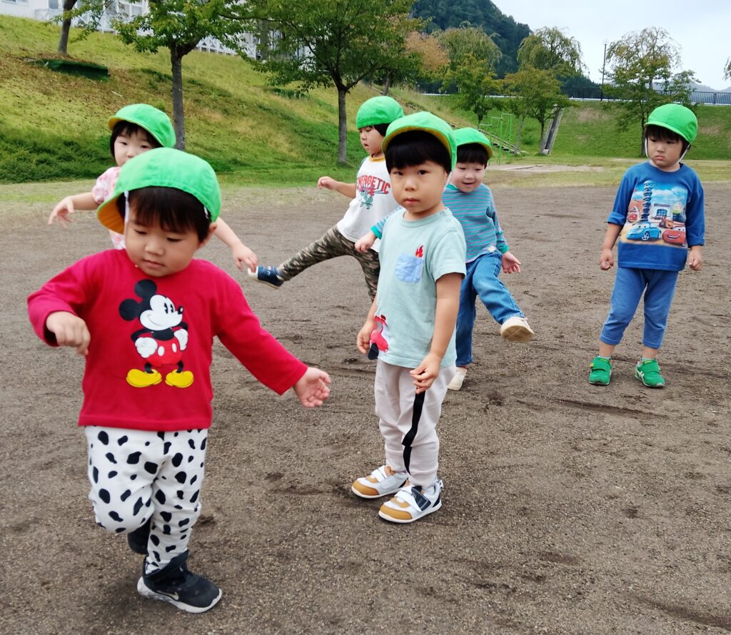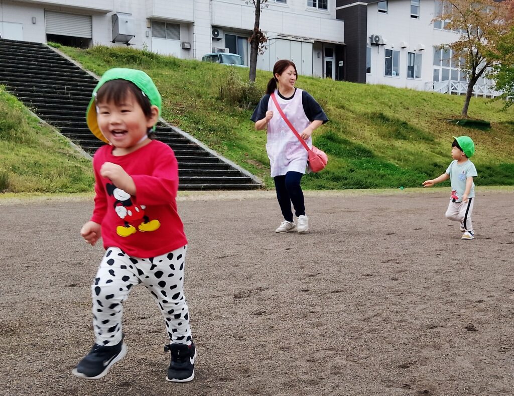 体力アップ!マラソンごっこ 2025.10.08 15日の公開マラソンごっこに向けて、2歳児以上の子どもたちが元気にグラウンドを駆け回っています。体力作りの一環で、自分のペースでゴールまで走りきるという強い気持ちを養っていきたいと思っています。