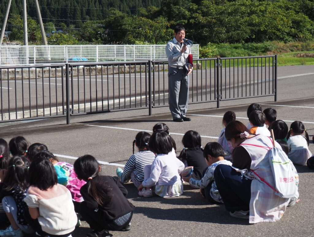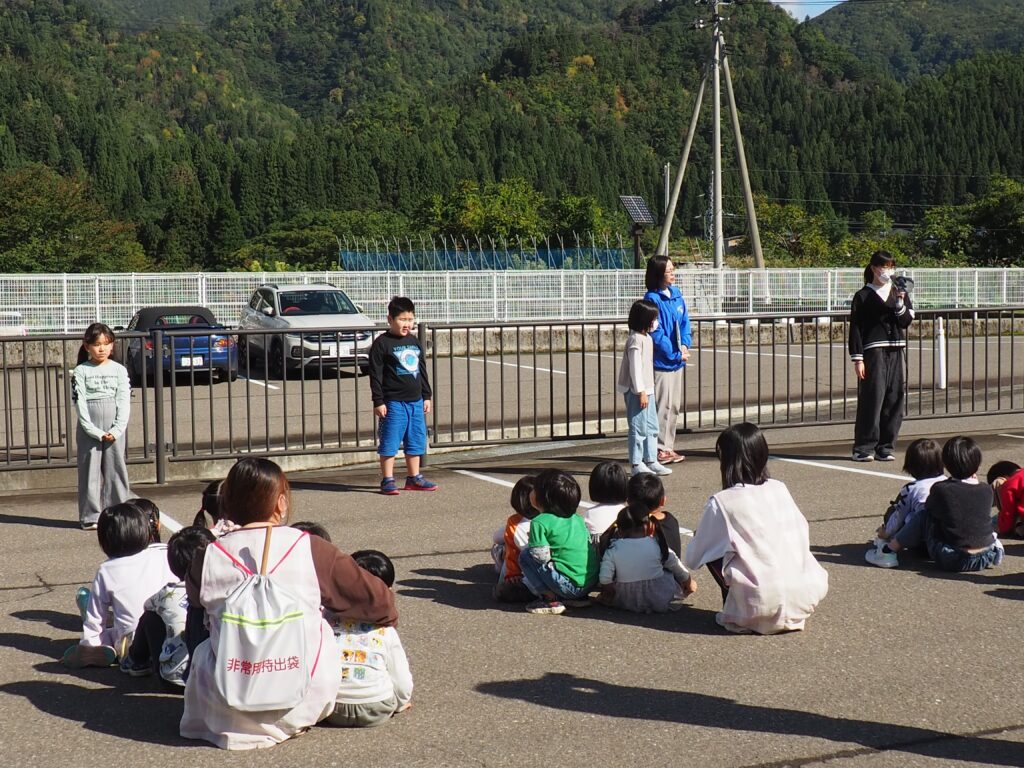 合同避難訓練で連携を深める 2025.10.17 保小連携推進事業の一環として、小学校の機械室から火災発生という想定の合同避難訓練を実施しました。保育園を代表してIさんが感想発表をしてくれました。避難場所に自分のお兄さんやお姉さんがいたことで、安心した表情をみせる子ども達の姿が印象的でした。今後も保小が連携を図りながら訓練を重ね、災害時の協力体制を整えていきたいと思っています。