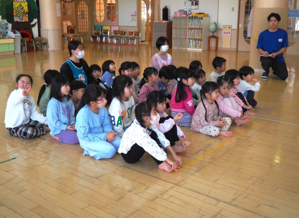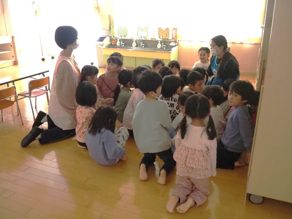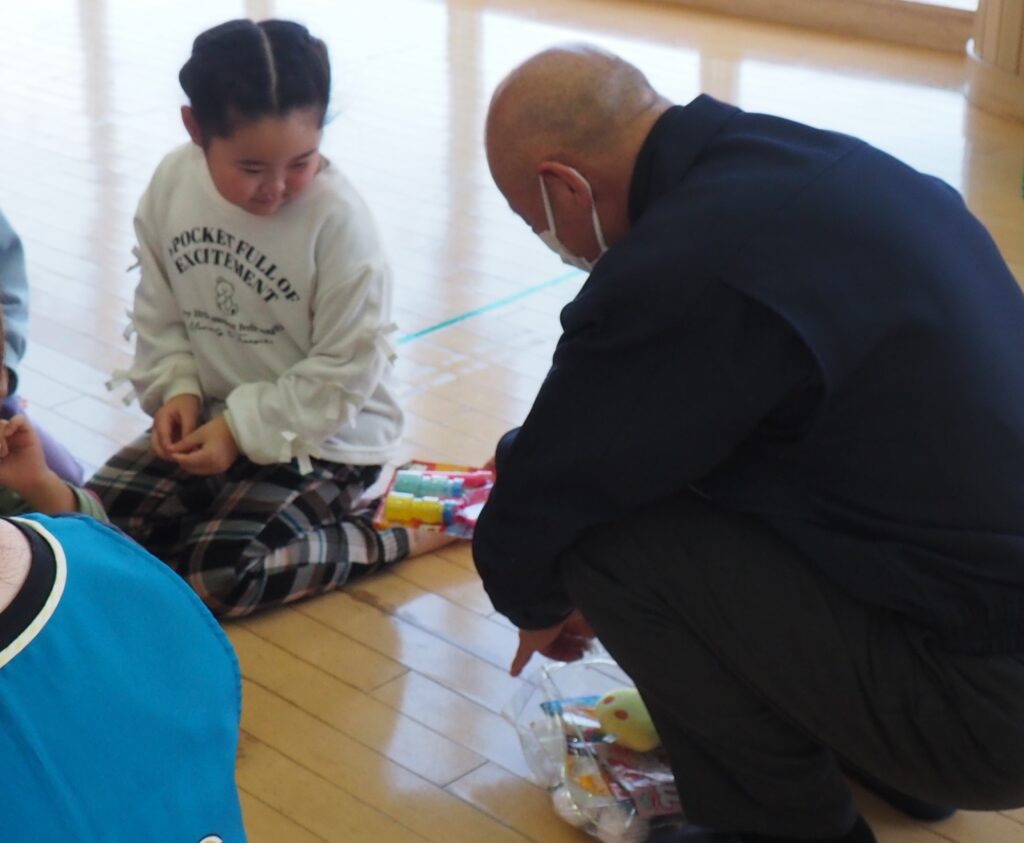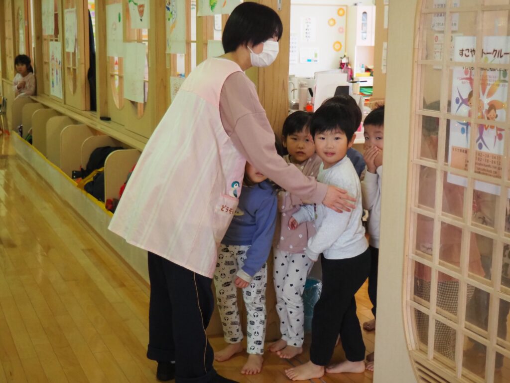 知らない人に声をかけられた場合を想定した模擬訓練を行いました。「おもちゃあげるから」という甘い言葉に、戸惑いながらも立ち止まり、、行かない選択をする子どもたち。その真剣な表情からは、自分を守ることを一生懸命考えるという成長した姿がみられました。小さな心の中で、大切な判断力が育っています。