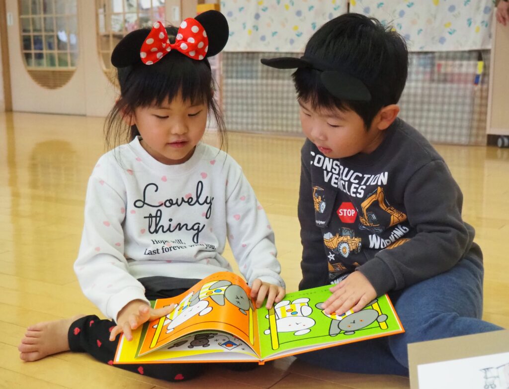 園長先生の「今日は何の日?」 2025.11.18 今日は「ミッキーマウスの日」です。ミッキーマウスに関連するお話・手遊び・クイズ・ダンス・などで興味関心を広げました。 「今日は何の日?」で使用される絵本は、児童館の図書担当職員の方が、図書館にある絵本の中から、毎月テーマに沿ってよりすぐりの絵本を選書してくださっており、大いに役立っています。