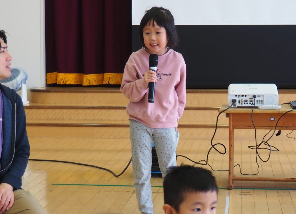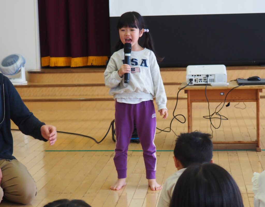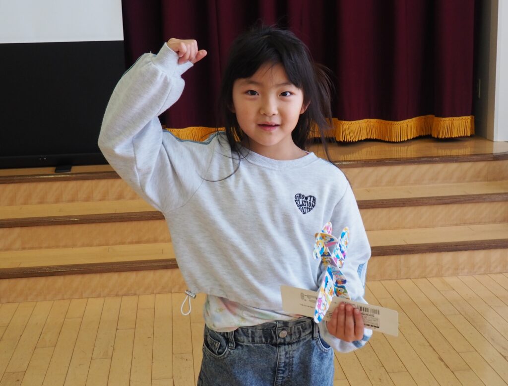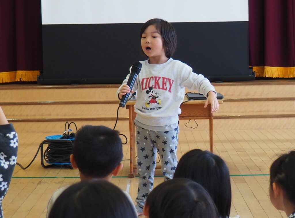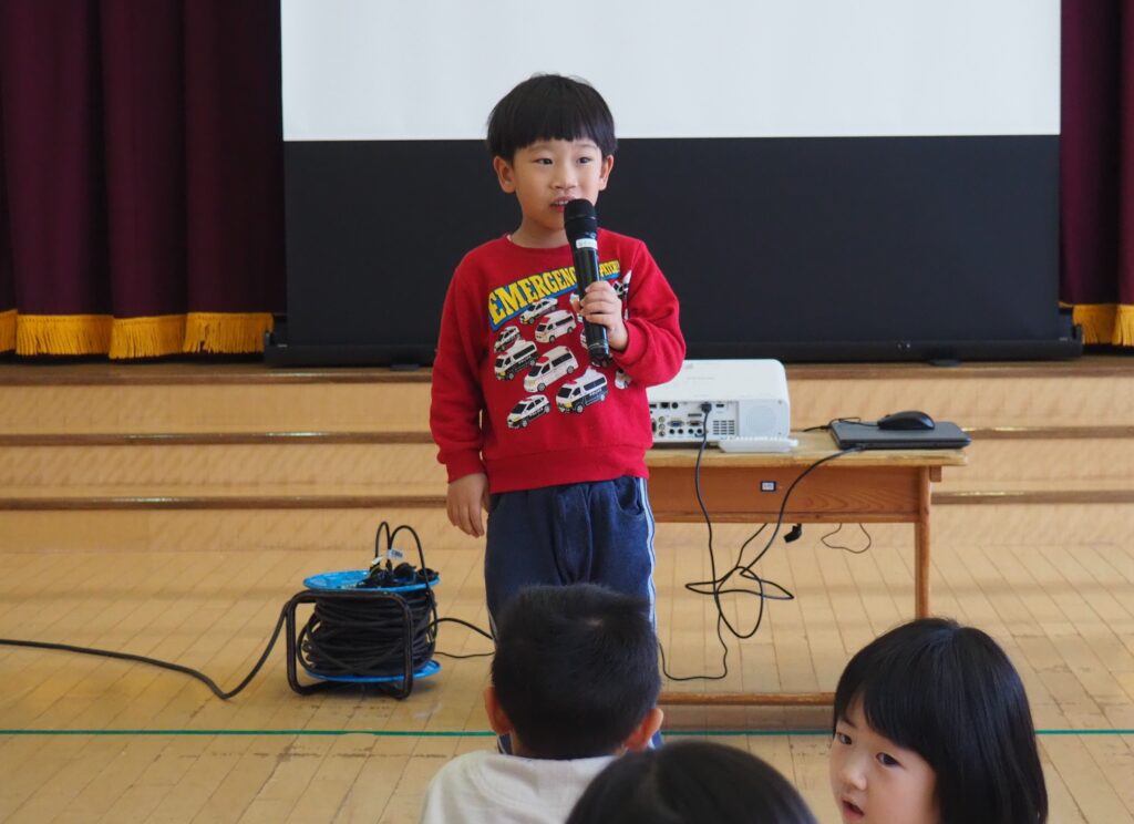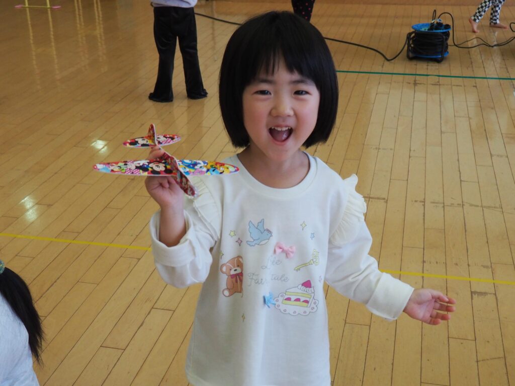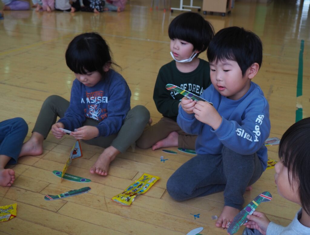 飛行機に乗って行きたい場所を発表しました。東京・大阪・神戸・ディズニーランド・ユニバ・遊園地・動物園・公園・山など、目を輝かせながら思い思いに発表する子どもたちの姿が印象的でした。