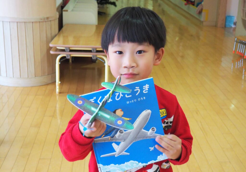 今日は「飛行機の日」です。飛行機にまつわる絵本・動画・発表・ゲームなどで、子どもたちの興味関心を広げました。