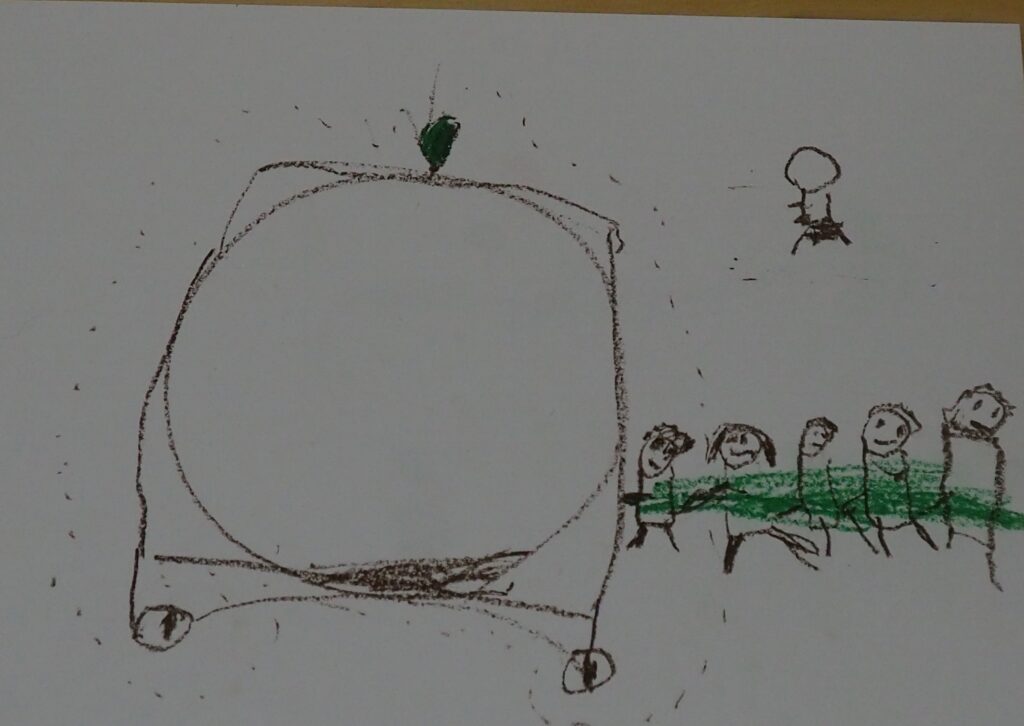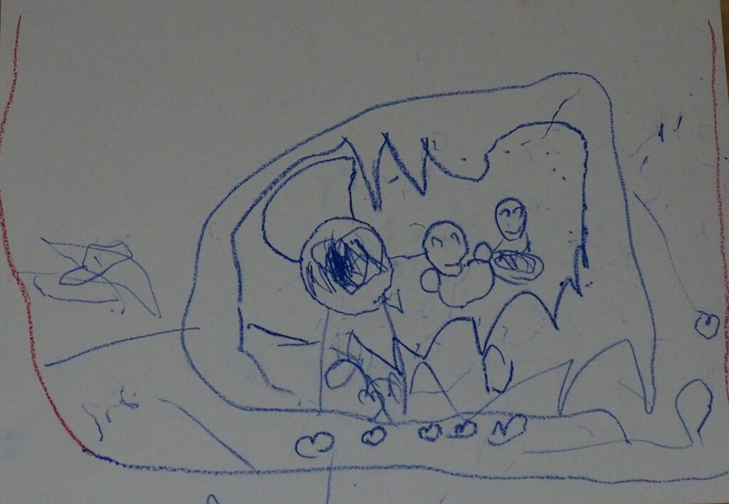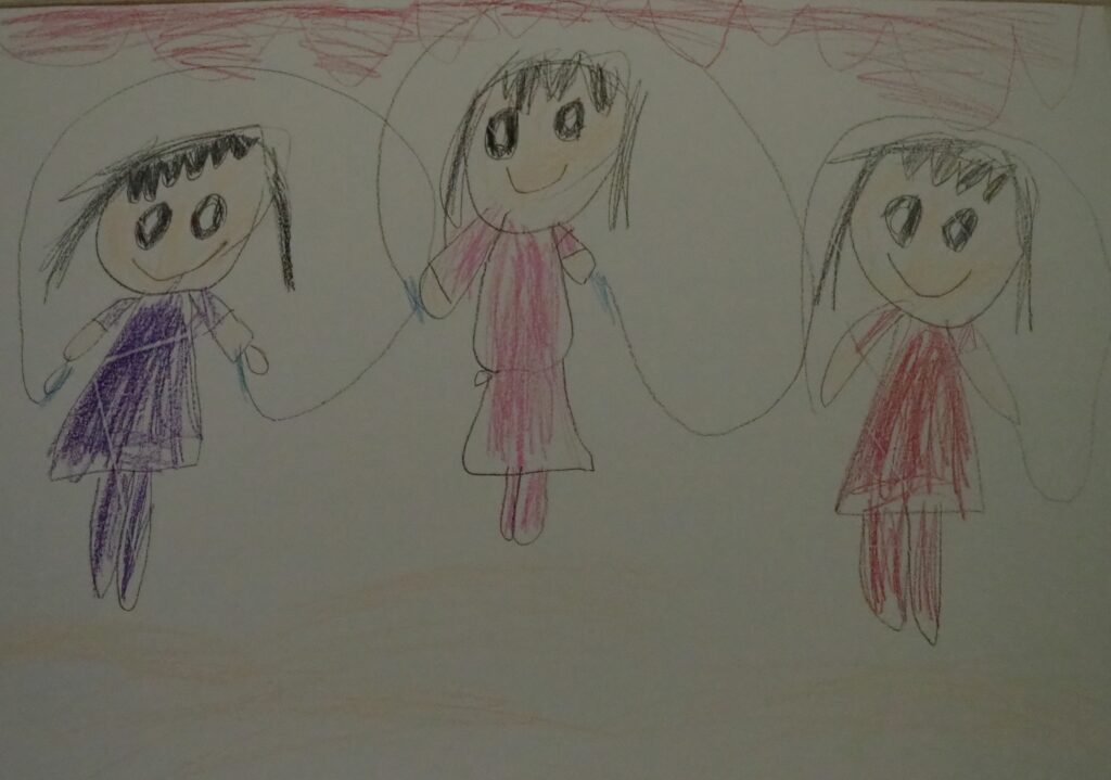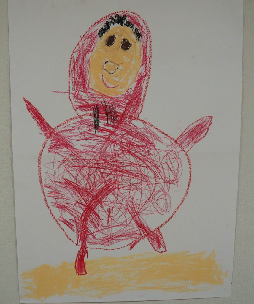 廊下の壁面に子どもたちが描いた「なかよし発表会」の絵を展示しておりますので、ご覧ください!