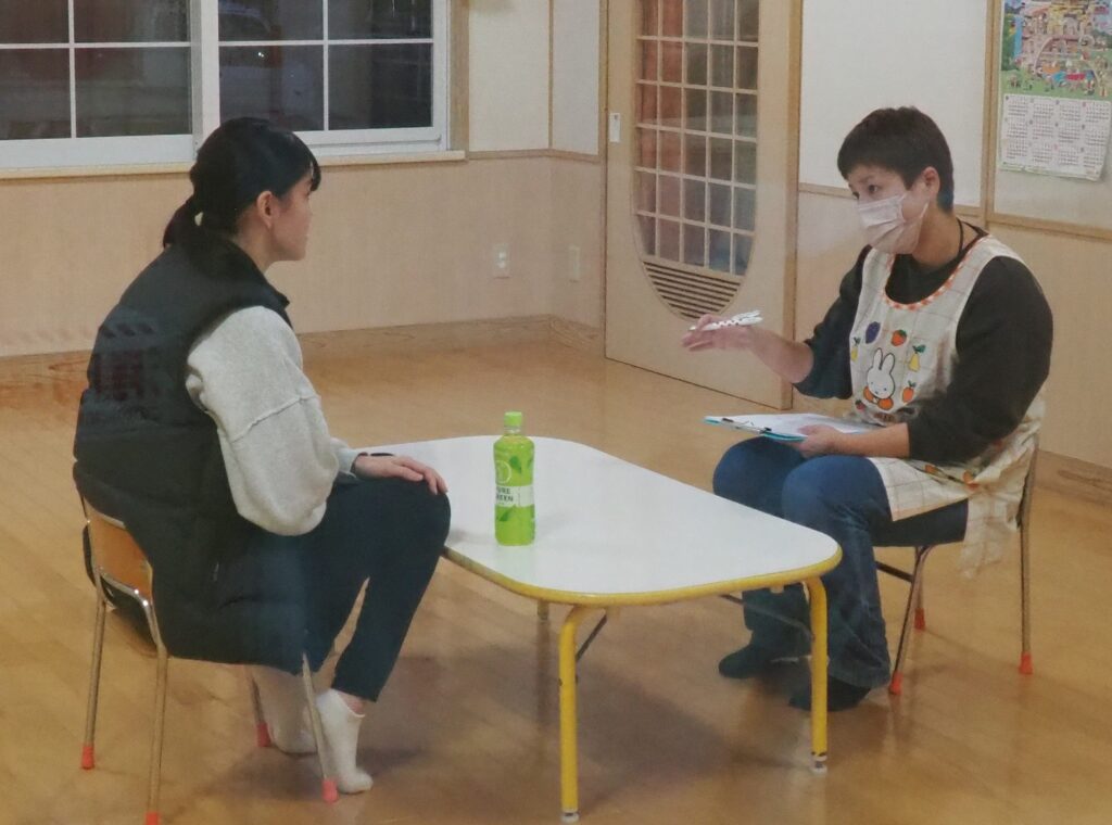 今日から、今年度2回目のすこやかトークルーム(保護者面談)が始まりました。「トイレトレーニングは?」「給食を食べているかな?」「友達関係は?」「集団生活に馴染んでる?」等、お子さんの気になる園生活についてお答えします。お子さんの気になる点は遠慮せずご相談ください。20分という限られた時間ですが、保護者の方が「面談して良かった!」と思えるような機会にしたいと思っています。また、その日以外でも気になることがあれば、解決に向け話し合いの場を設けますのでお気軽にご相談ください。