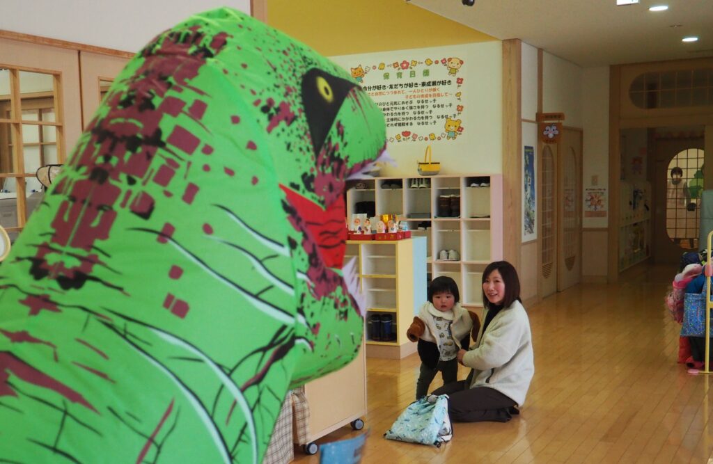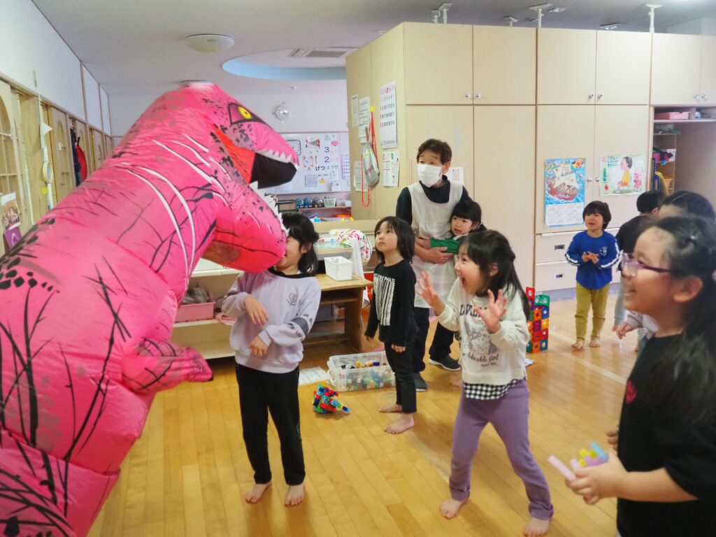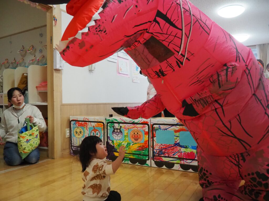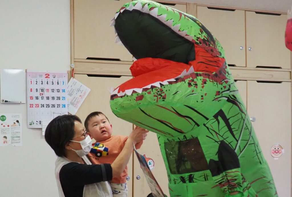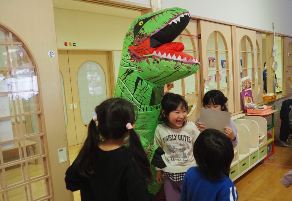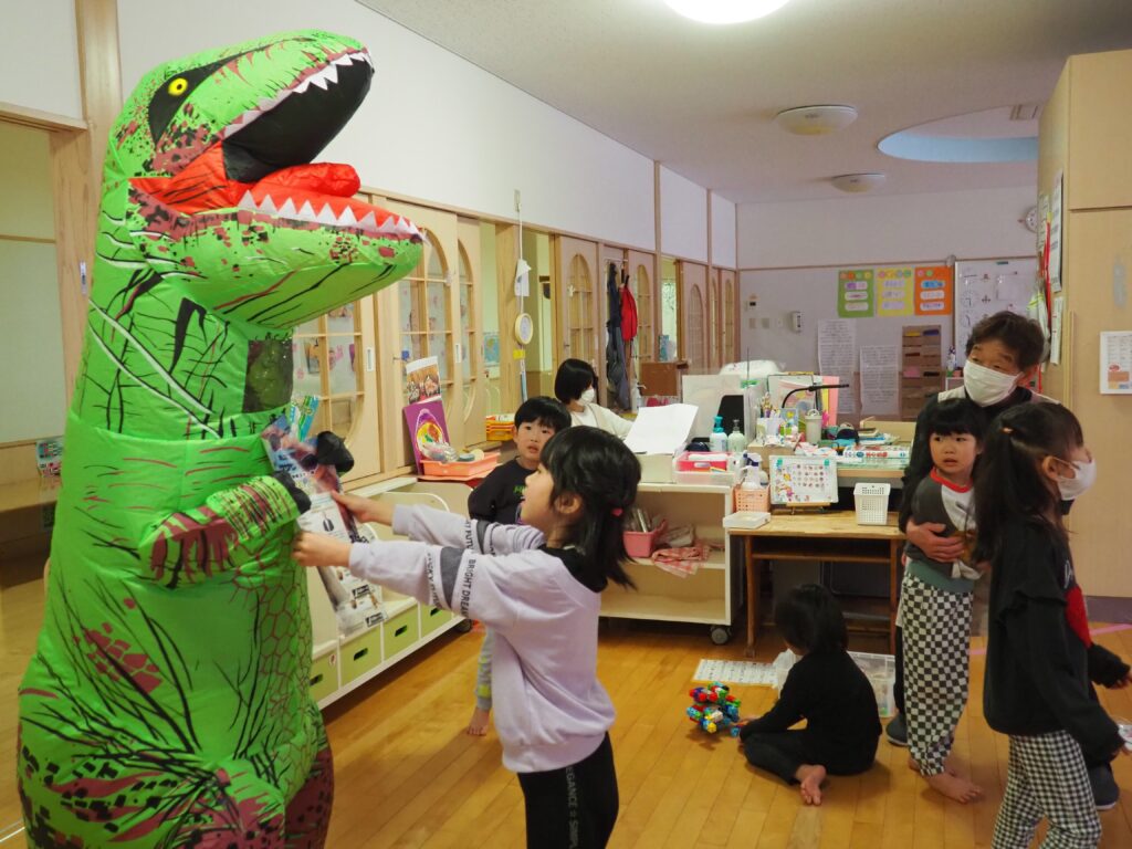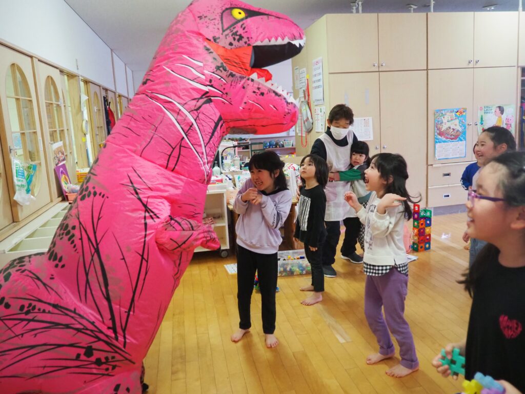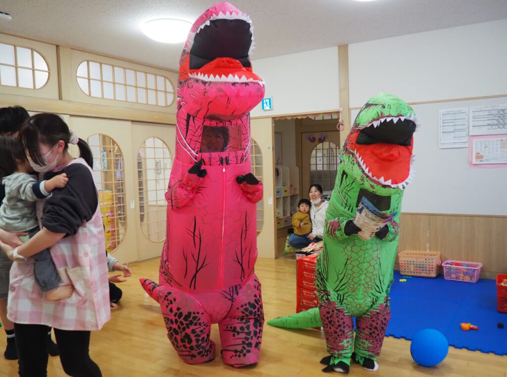 明日はジュネスへGO! 2026.02.27 丸太組のスタッフさんが、「ティラノサウルスレース㏌ジュネス栗駒スキー場」のPRで、サプライズ訪問してくれました。楽しいイベントですので、都合のつく方はぜひ、ジュネス栗駒に足を運んでみてはいかがでしょうか!