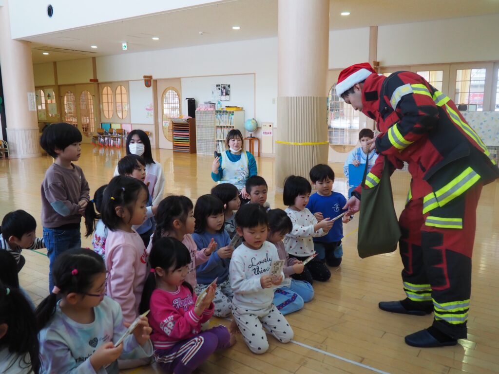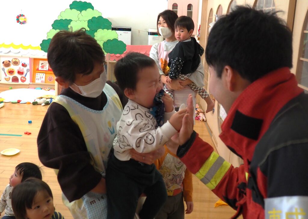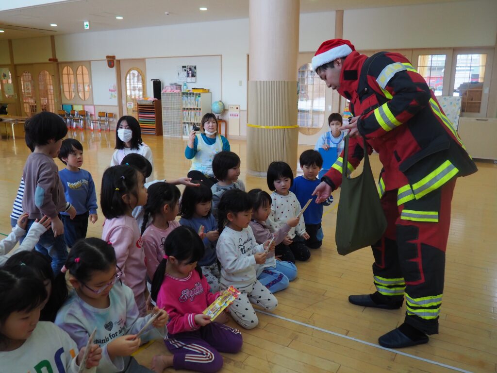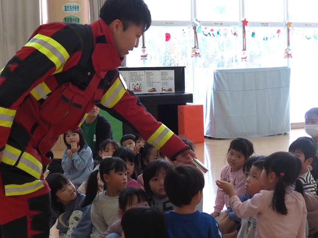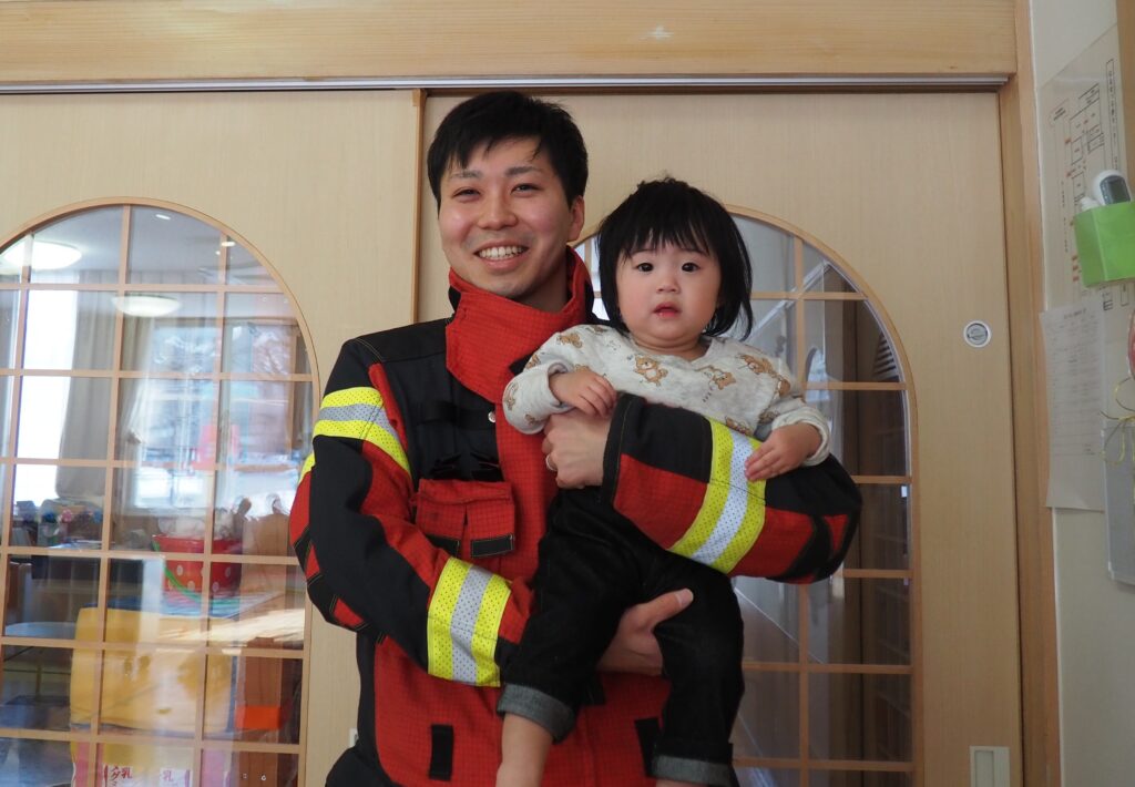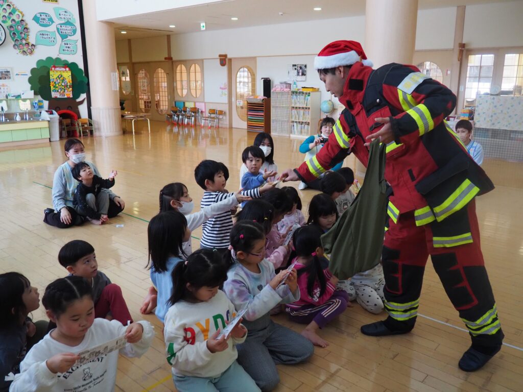 なるせ保育園の前身である「こばと保育園」の卒園児で、現在は消防署で使命感を胸に働く消防士さんが、園児のために特別な「火災予防教室」を開いてくださいました。「子どもたちに、どうしても伝えたいことがあるんです!」と、自ら申し出てくださり、教材づくりから構成まで、すべてオリジナルのプログラムを準備しての開催で、子どもたちのために時間をかけ、心を込めて作ってくれたことが伝わってくるみごとな内容でした!