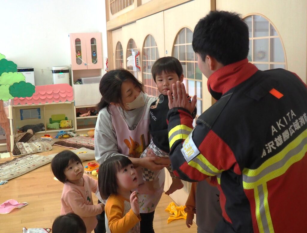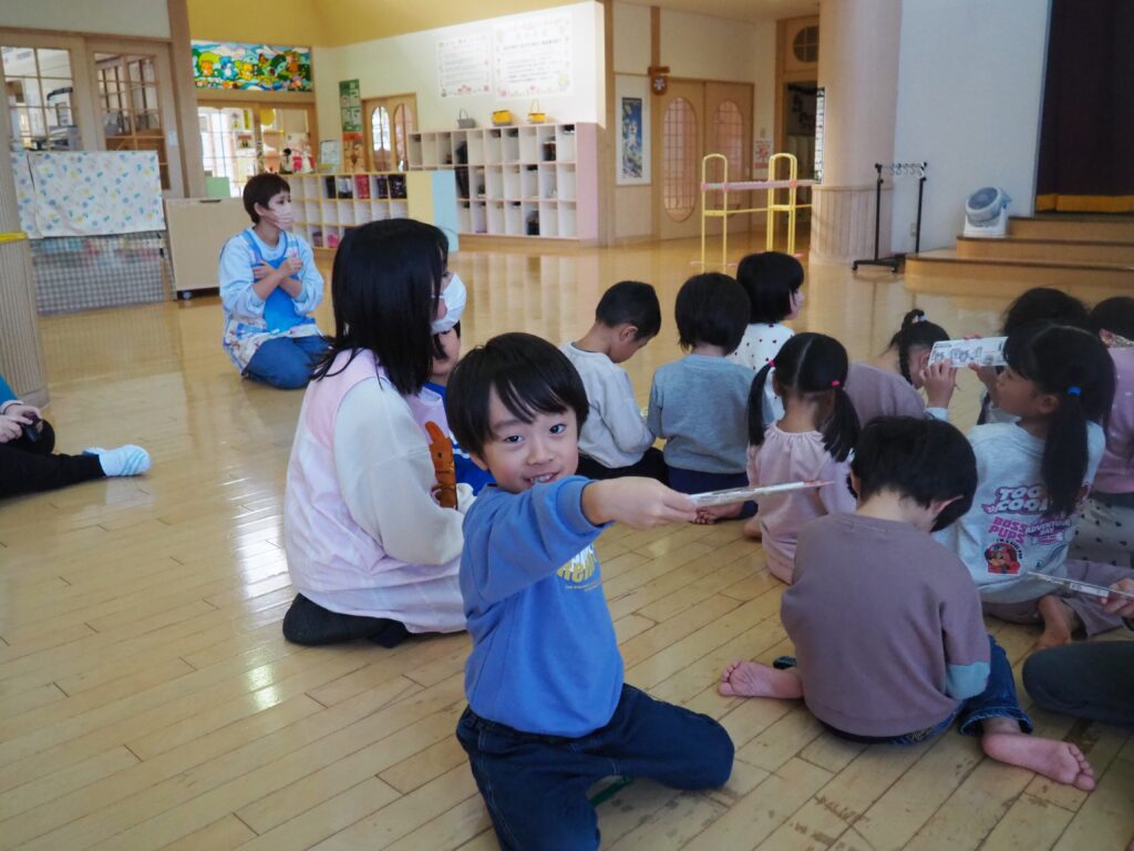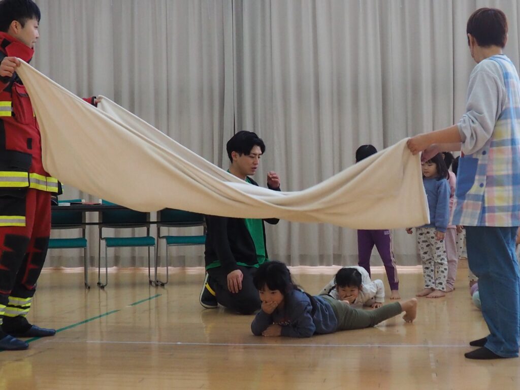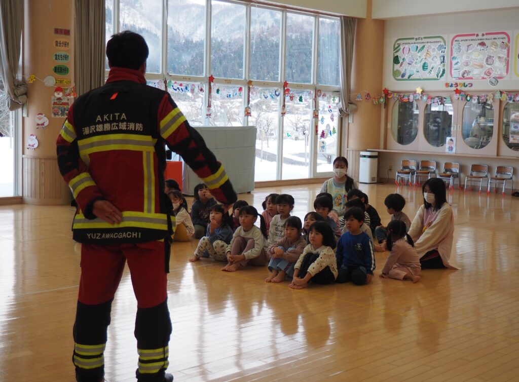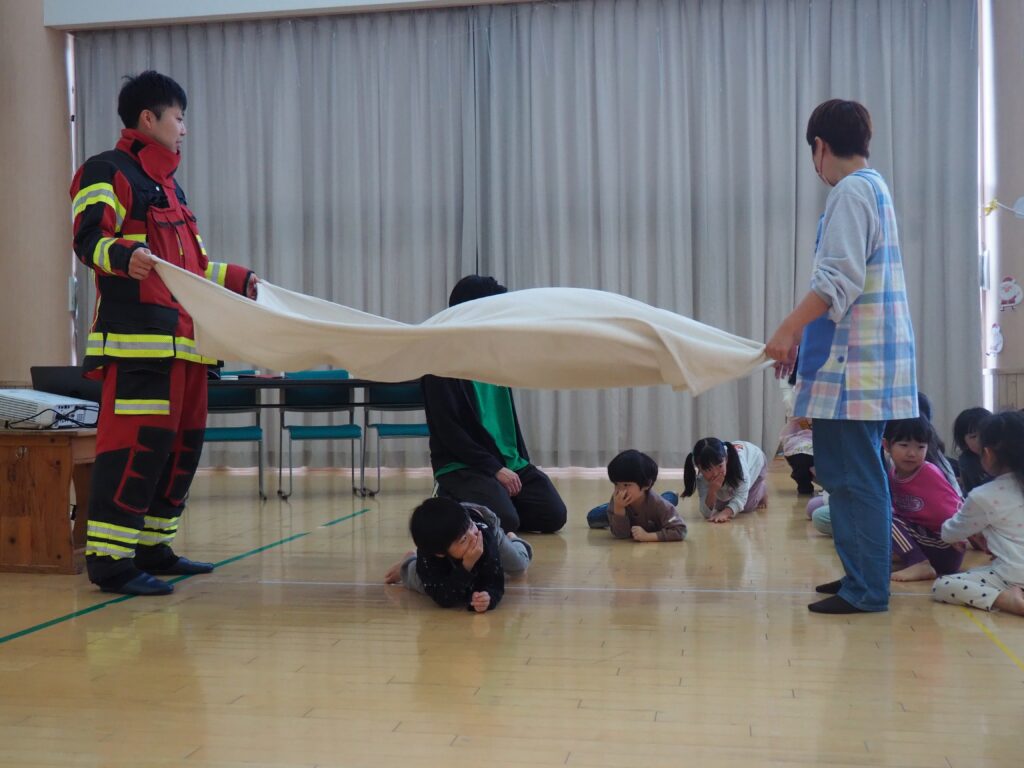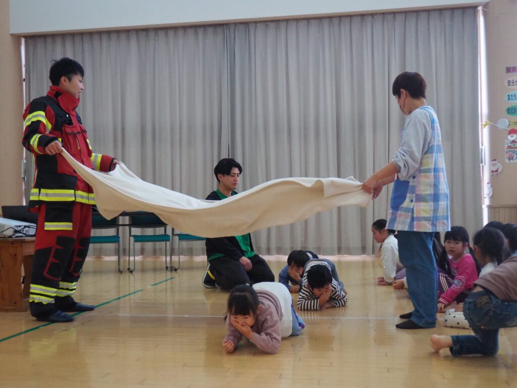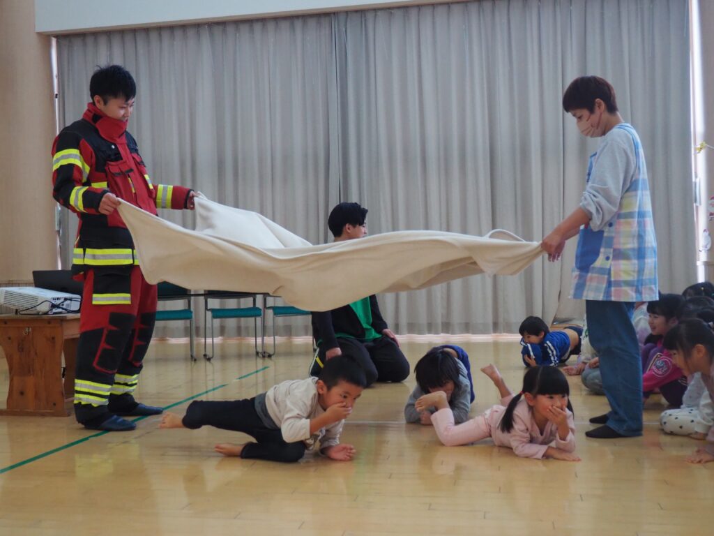 なるせ保育園の前身である「こばと保育園」の卒園児で、現在は消防署で使命感を胸に働く消防士さんが、園児のために特別な「火災予防教室」を開いてくださいました。「子どもたちに、どうしても伝えたいことがあるんです!」と、自ら申し出てくださり、教材づくりから構成まで、すべてオリジナルのプログラムを準備しての開催で、子どもたちのために時間をかけ、心を込めて作ってくれたことが伝わってくるみごとな内容でした!